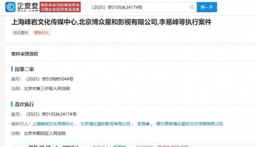 8月21日开云体育,李易峰及名下公司、前经纪公司被强制实施约4990万元。