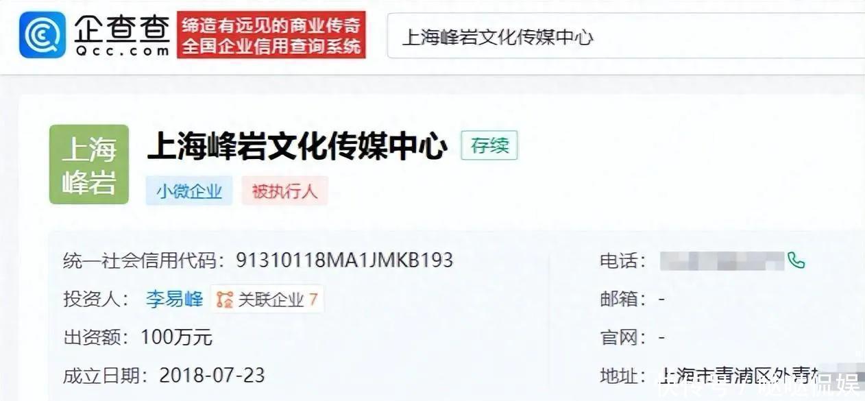 上海峰岩是李易峰2018年7月开的个东说念主独资企业,注册成本100万。