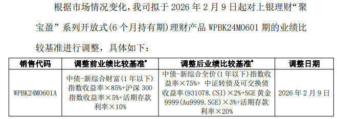 上银答理则从2月9日起退换了一款居品功绩比较基准的指数部分。